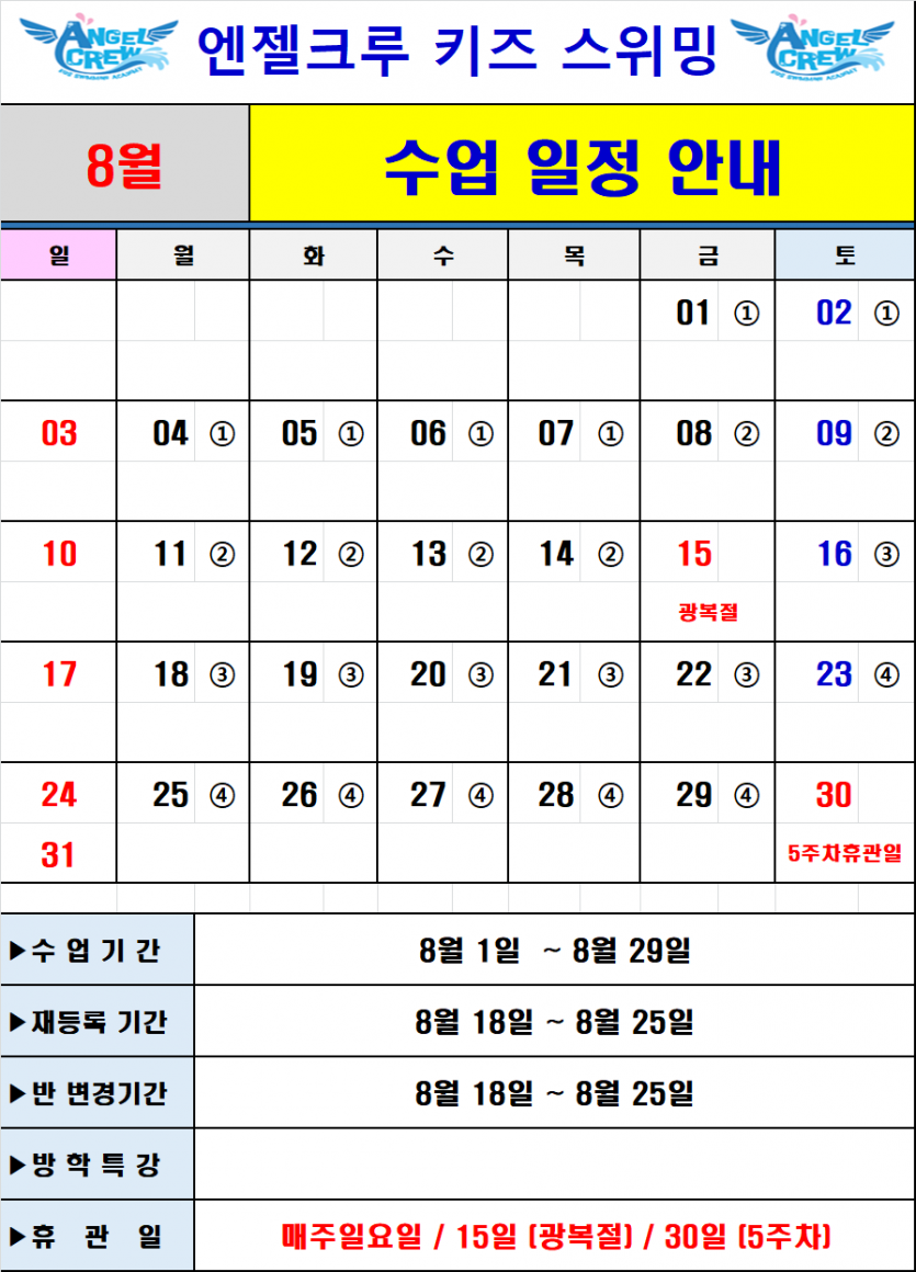 8월 수업 일정표